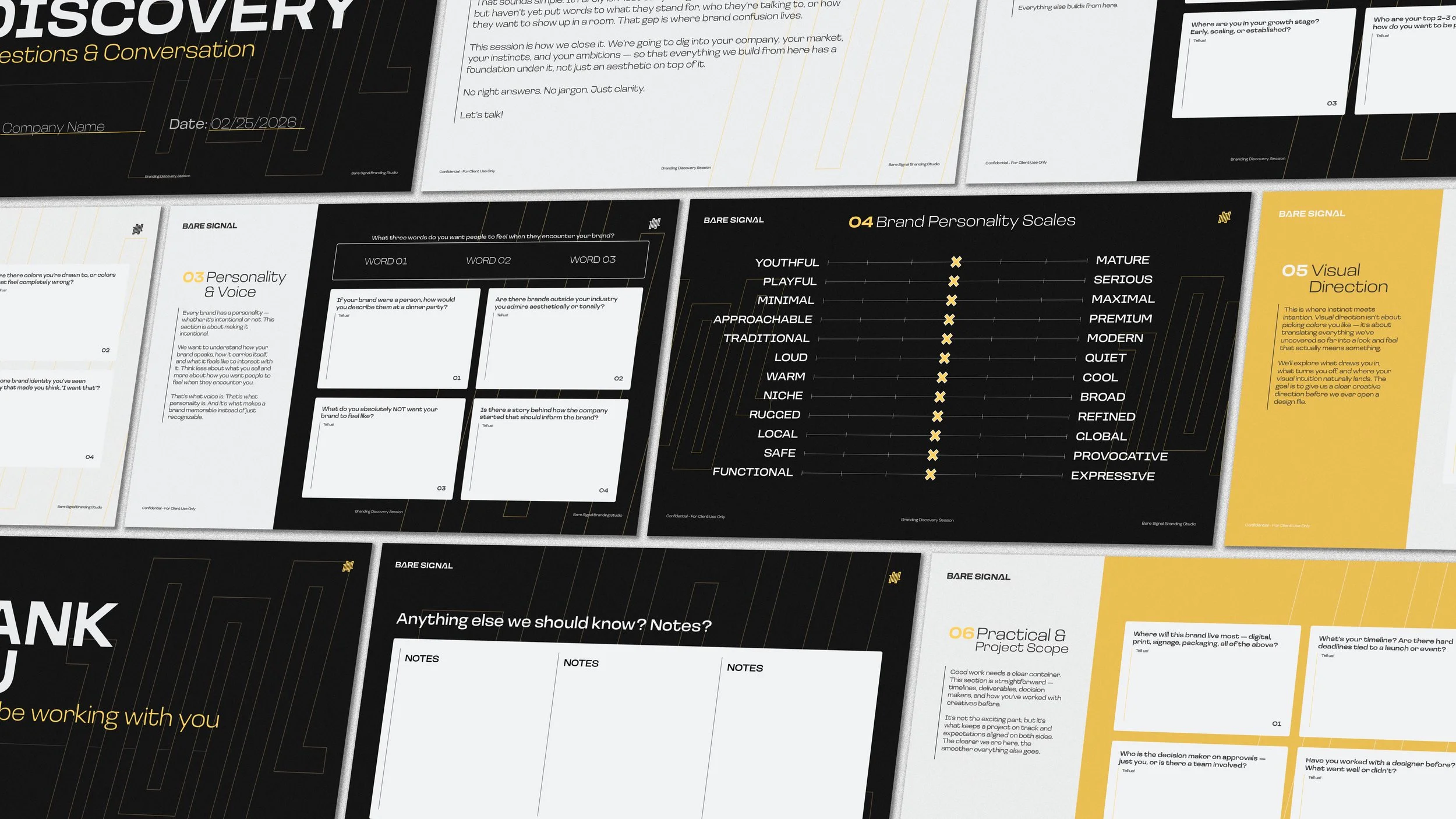Great branding isn't guesswork — it's strategy. Book a discovery session and we'll map out exactly what your brand needs to make the right people stop and choose you.