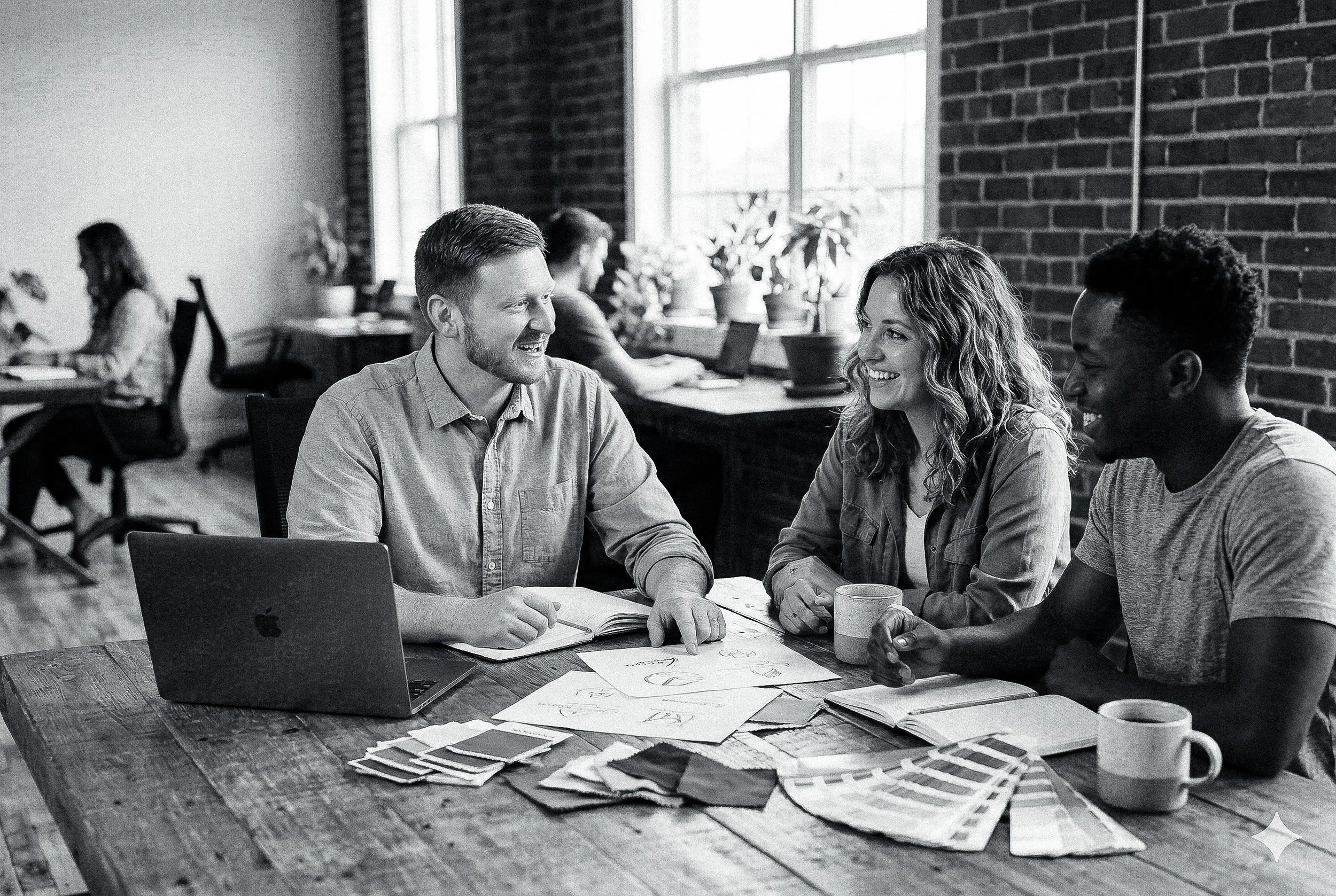 Before anything is designed, we dig in. We start by understanding your business, your audience, your competitors, and where you want to go. Strategy is the foundation everything else is built on — it's what ensures your brand doesn't just look good but actually works. By the time we pick up a pencil, we already know exactly what your brand needs to say and who it needs to say it to.
